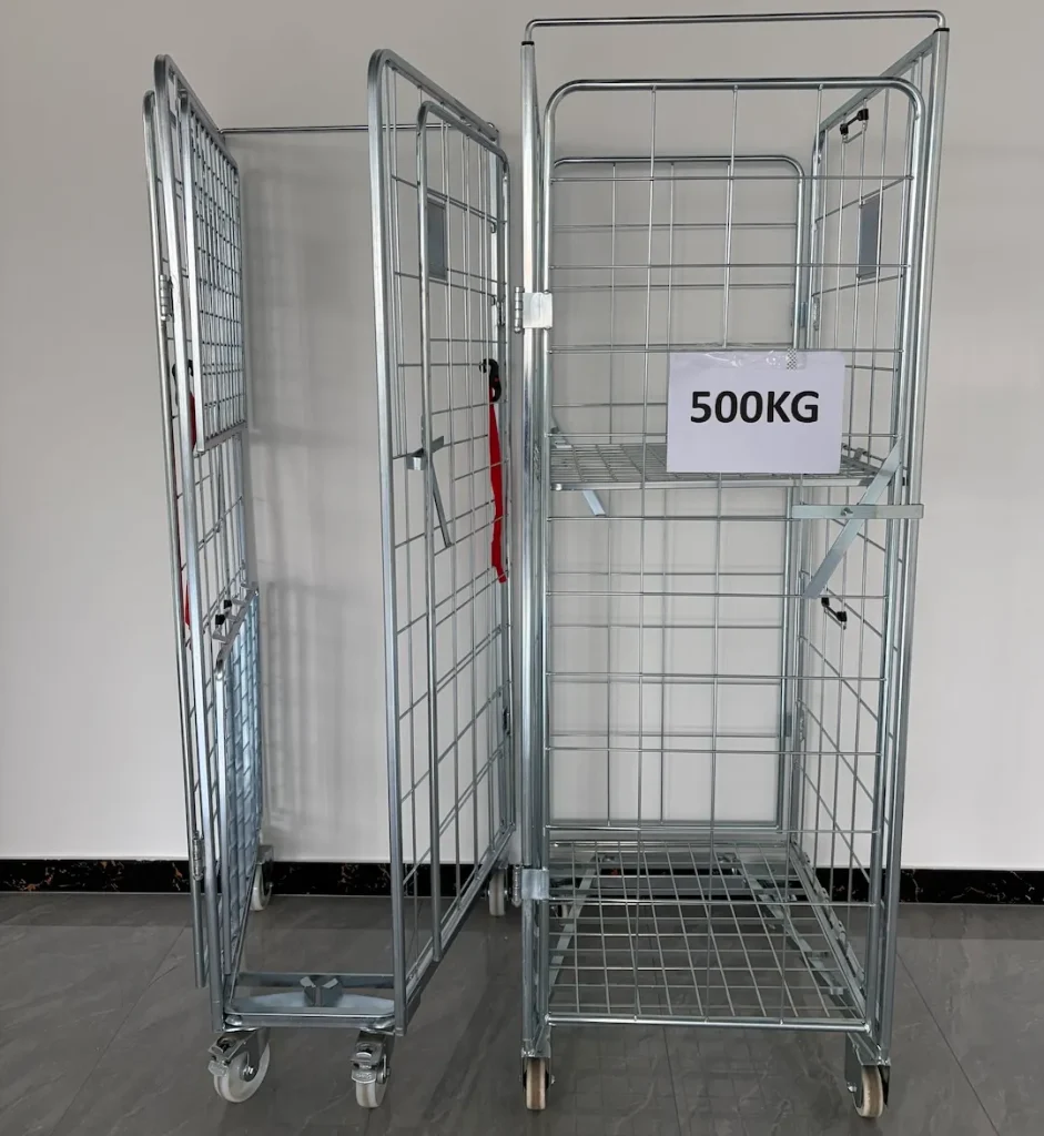 Roll cage trolleys combine a base deck with 2โ4 mesh walls, often with a hinged door and latch system. Security versions use tighter mesh and lockable doors to protect high-value tools, components, or controlled items in warehouses and backrooms.