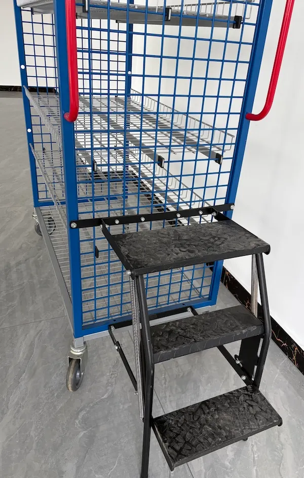 Carts with integrated steps or ladders so operators can safely reach higher rack levels (for example 2.5โ3.0 m) without separate equipment.